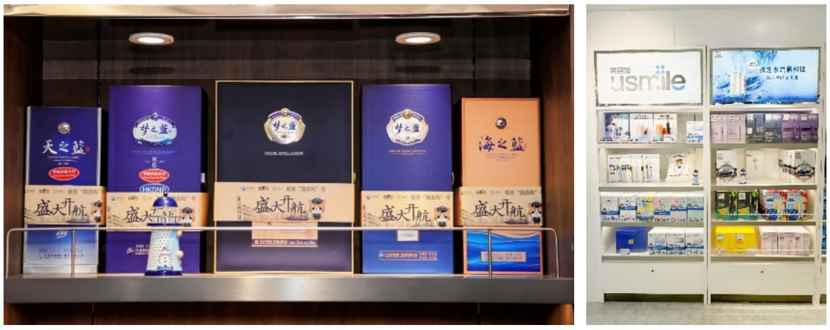 為了更好的提供客戶體驗(yàn),體會(huì)到“鼓浪嶼”號(hào)郵輪特有的上海風(fēng)情,cdf鼓浪嶼號(hào)免稅店就上海主題對船長酒廊進(jìn)行了裝飾,讓消費(fèi)者感受到海上、家上海的風(fēng)格。