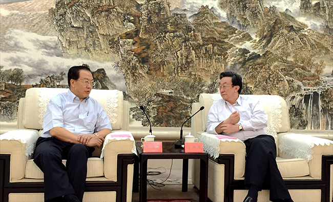 6月9日, 集團(tuán)張學(xué)武董事長在鄭州拜會了河南省委書記郭庚茂。