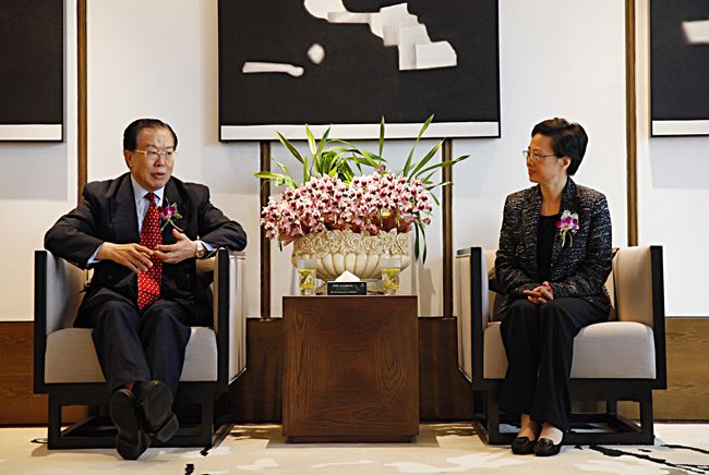 11月18日,集團(tuán)張學(xué)武董事長在安吉會見了前來出席集團(tuán)與安吉縣人民政府簽訂戰(zhàn)略合作協(xié)議暨港中旅Club Med安吉度假村建設(shè)啓動儀式的浙江省副省長梁黎明。