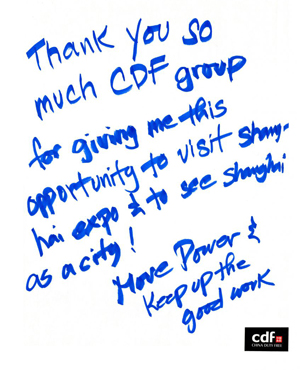 “我家是在菲律賓,每年都會來一次廈門,每次都在免稅店買些東西。這次從廈門機(jī)場準(zhǔn)備返程的時候在免稅店買兩瓶酒還有施華洛世奇飾品準(zhǔn)備送我太太,結(jié)賬的時候店員介紹我填寫抽獎卡片,說有機(jī)會可以中獎免費游世博會,沒想到真的中獎了。當(dāng)接到中獎通知電話的時候感覺很是不可思議,很懷疑‘是真的嗎?’但是當(dāng)中獎資料文件和世博門票郵寄給我的時候我才相信這是真的呵呵。”