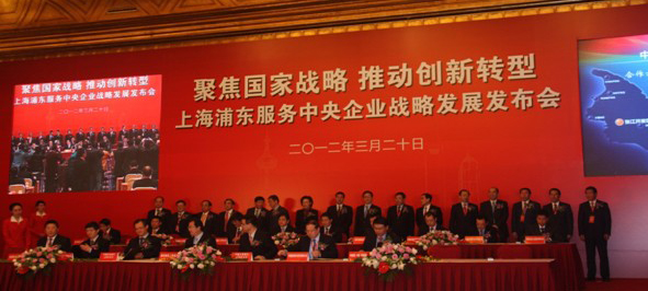 2012年3月20日,國旅股份公司總裁張建華、副總裁彭輝、中免集團(tuán)黨委書記兼副總經(jīng)理陳建山出席了在上海東郊賓館舉行的“上海浦東服務(wù)中央企業(yè)戰(zhàn)略發(fā)展發(fā)布會(huì)”。