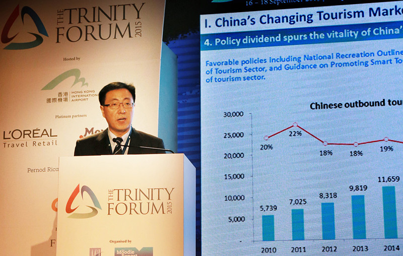 2015年9月16日至18日,受國際機(jī)場協(xié)會(ACI)及旅游零售行業(yè)權(quán)威媒體《穆迪報道》邀請,由中國國旅股份有限公司副總經(jīng)理兼中免集團(tuán)董事長、總經(jīng)理彭輝帶隊,中免集團(tuán)副總經(jīng)理陳國強(qiáng)、王延光陪同參會的中免代表團(tuán),參加了在香港舉辦的三方論壇。今年三方論壇的主題是“三方共識,以消費(fèi)者為核心”,吸引了包括世界機(jī)場、旅游零售商和品牌商在內(nèi)的300多家國際知名企業(yè)、400多名代表參與。