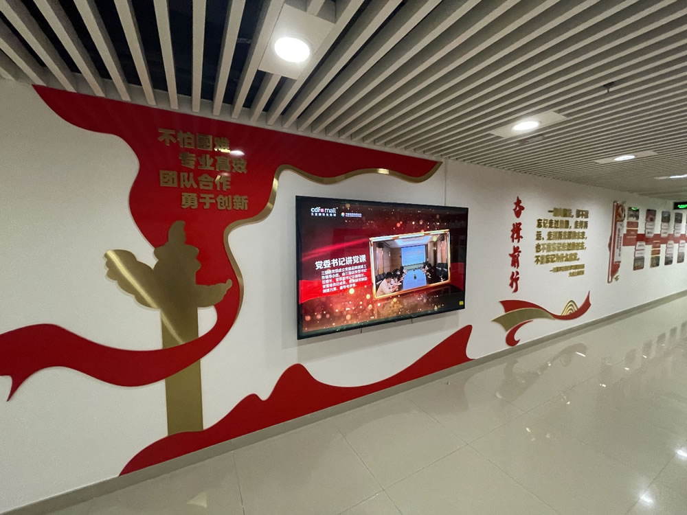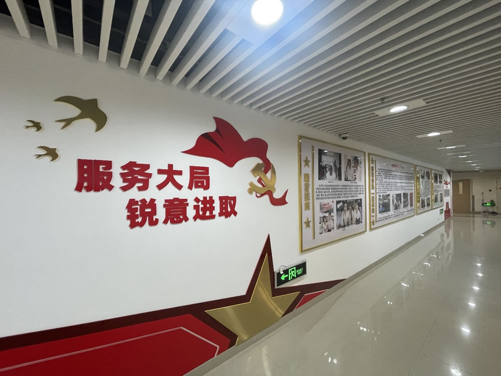 該長廊全長近125米,分為“初心使命”“奮輯前行”“黨建領航”“踐行承諾”四個篇章,涵蓋了習總書記重要講話精神摘錄、企業(yè)發(fā)展歷程、歷史成績、黨組織概況及組織架構、“我為群眾辦實事”實踐活動開展情況、精準扶貧、黨風廉政建設、防范走私套代購專項工作、黨建品牌創(chuàng)建要點、支部特色工作法、“兩優(yōu)一先”榮譽展示、黨建活動剪影、黨務公開欄、集團黨建示范經驗推廣展示等十多個大類的內容,采用了傳統(tǒng)圖文并茂與視聽互動相結合的形式,專門設置了3處電子顯示屏,循環(huán)播放各類影像素材,全景展現了三亞店多年來堅持“聽黨話、跟黨走”不動搖的責任擔當和廣大黨員干部員工不怕困難、勇于創(chuàng)新的奮斗精神。