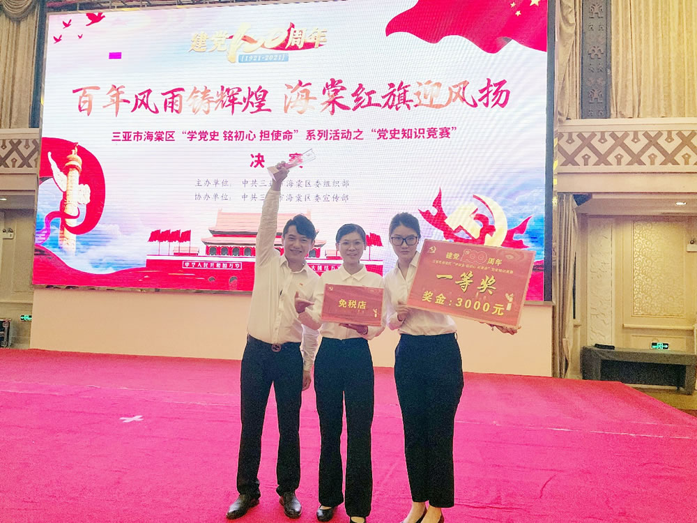 五年來,在各級組織的關(guān)懷和支持下,三亞店先后榮獲“全國巾幗文明崗”“中央企業(yè)團(tuán)工委青年文明號”“海南省五一勞動獎(jiǎng)狀”“海南省先進(jìn)基層黨組織”等多項(xiàng)榮譽(yù)。在2021年各級黨組織“兩優(yōu)一先”的評選中,公司黨委及個(gè)人共獲得各級優(yōu)秀共產(chǎn)黨員12人、優(yōu)秀黨務(wù)工作者3人、先進(jìn)基層黨組織4個(gè),其中,公司黨委書記、執(zhí)行董事高緒江同志榮獲“全國優(yōu)秀共產(chǎn)黨員”,總經(jīng)理趙遠(yuǎn)昭同志榮獲“國資委優(yōu)秀共產(chǎn)黨員”,第二黨支部榮獲“國資委先進(jìn)基層黨組織”并入選2020年國資委第二批基層示范黨支部。