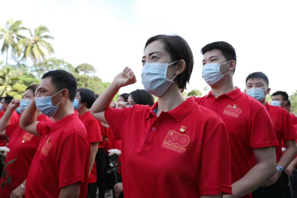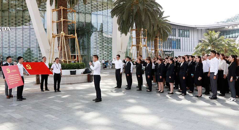 三亞店黨委組織全體黨員進(jìn)行莊嚴(yán)的宣誓活動(dòng)。一句句鏗鏘有力、擲地有聲的錚錚誓言響徹免稅店上空,是為中國(guó)共產(chǎn)黨成立100周年獻(xiàn)禮,更是對(duì)黨、對(duì)人民的鄭重承諾。