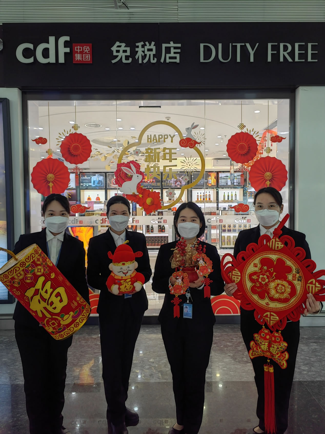 同時(shí),中免集團(tuán)武漢機(jī)場免稅店也以飽滿的熱情投入到復(fù)工復(fù)產(chǎn)工作中。在武漢天河機(jī)場國際廳安檢外,映入眼簾的就是免稅店“兔年大吉”、“新年快樂”的喜慶裝飾,新年的氛圍感拉滿。此外,武漢機(jī)場免稅店的擴(kuò)建店面也即將投入使用,屆時(shí)將打造紅酒坊等備受消費(fèi)者喜愛的綜合經(jīng)營區(qū)。